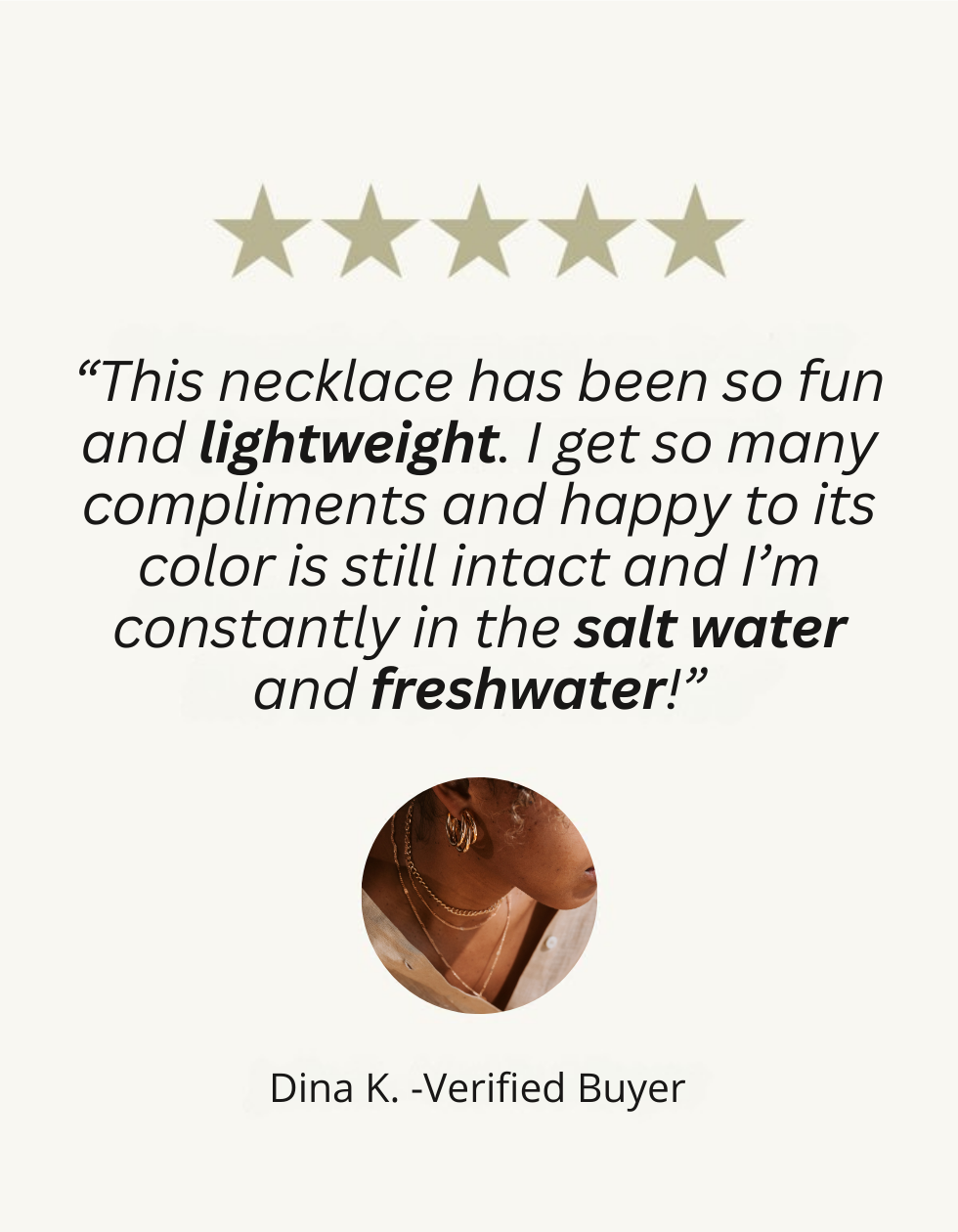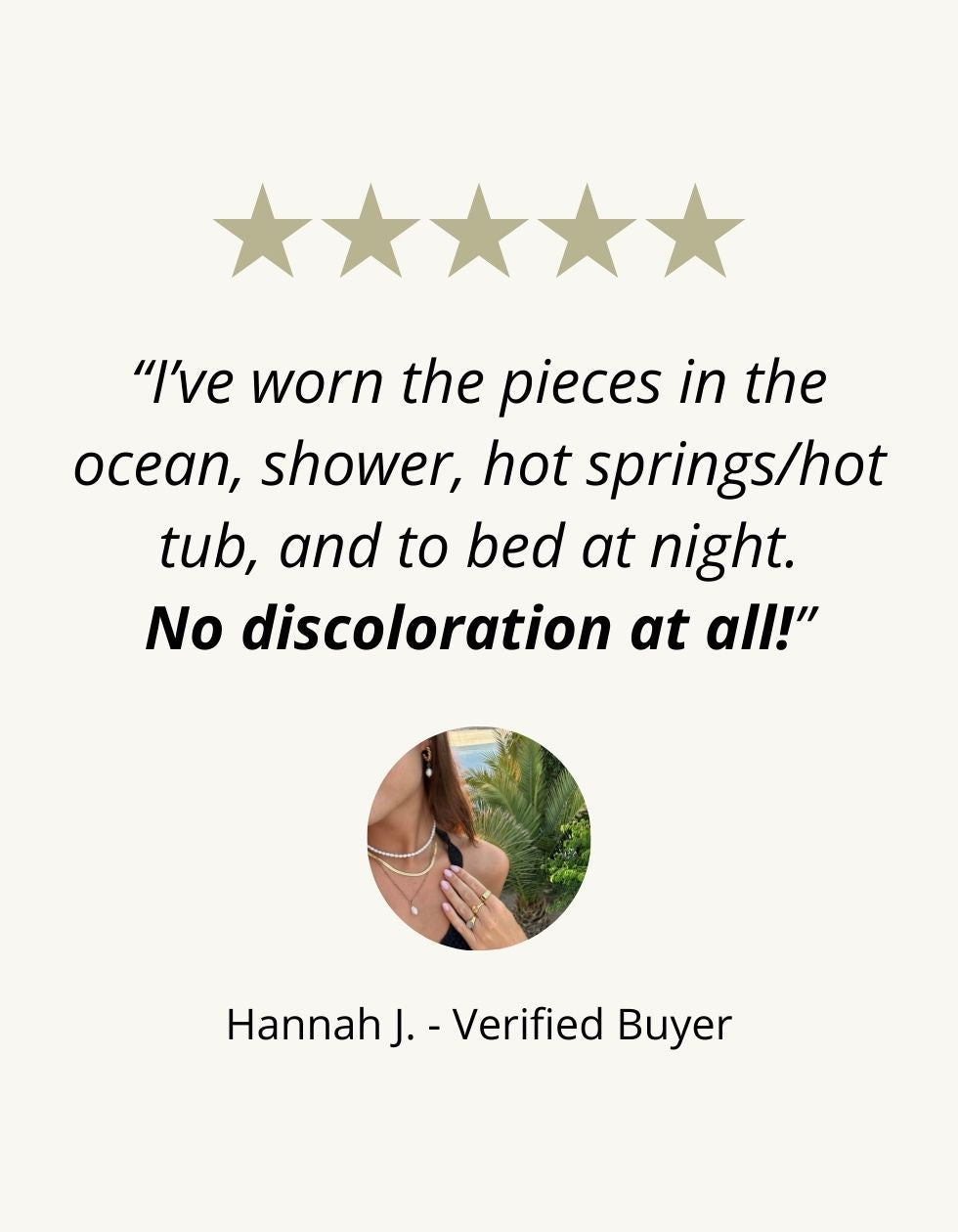We feel confident that our jewelry won’t lose color over time. If your item lost its golden tone, all you have to do is follow our warranty policy and we’ll send you a brand new item.