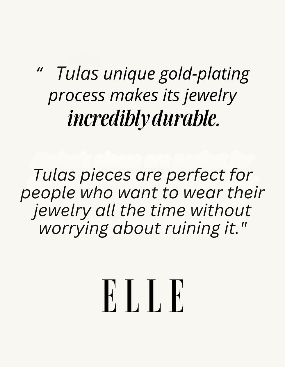 Each Tulas piece is waterproof, sweatproof, hypoallergenic, tarnish-free, and cosmetic-friendly.
